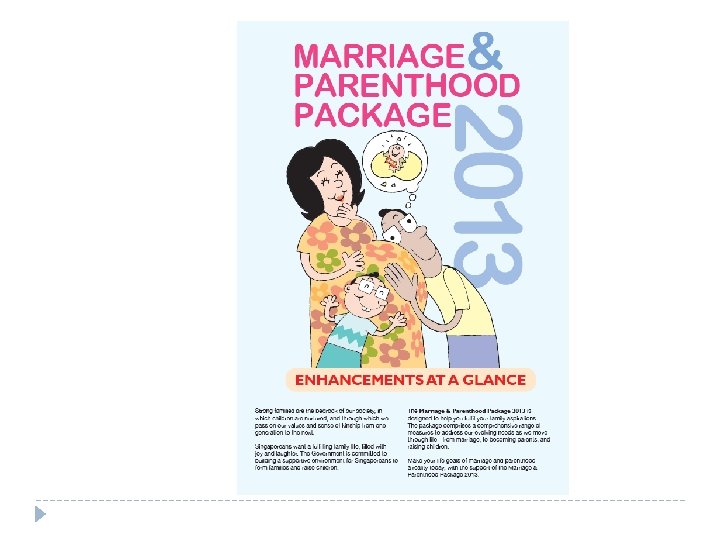 Techniques they used to convince people to have more babies � 2 children = $10, 000 � And then tax relief on third child � Increase maternity leave from 8 weeks to 12. � Shorter work so singles got together. � Cheap nurseries � Preferential access to the best schools � Spacious apartments