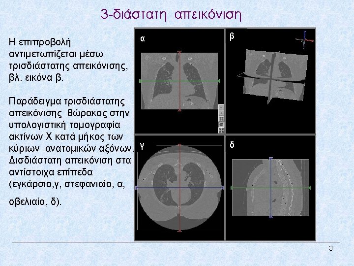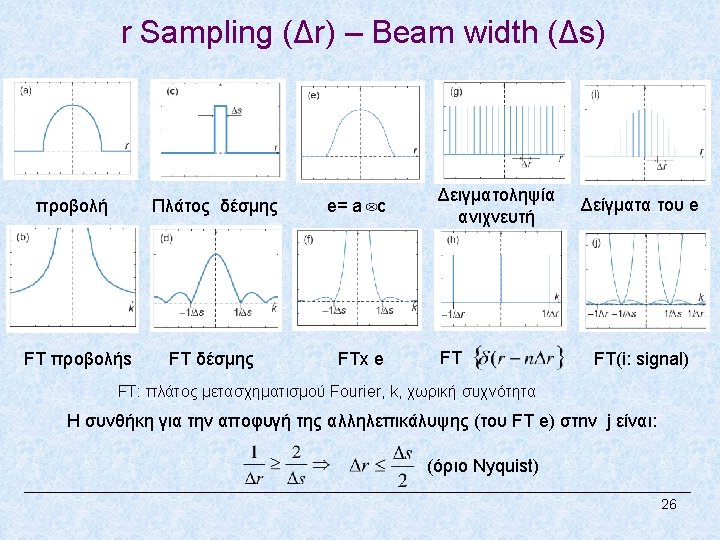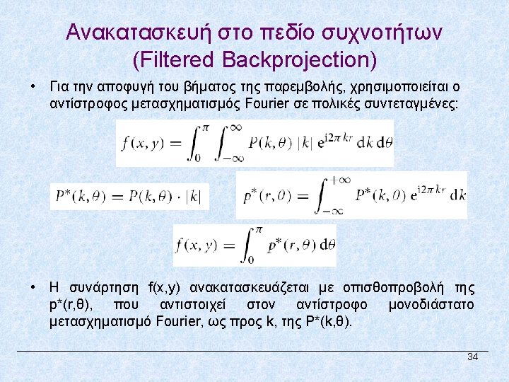 Φιλτραρισμένη οπισθοπροβολή (Παράδειγμα) f(x, y)= 1 2 3 4 αρχική 0 0 0 0 -2 17/2 23/2 7 αρχικοποίηση -3/2 9 6 3/2 back-project (-3/2, -1/2, 11/2, -7/2) at 900 back-project ( -2, 1, 4, -3) at 0 0 back-project -5/2, 5, -5/2) 1350 ( at 1 4 3 6 9 12 back-project -5/2, 5, -5/2) 450 τελική 41 ( at
