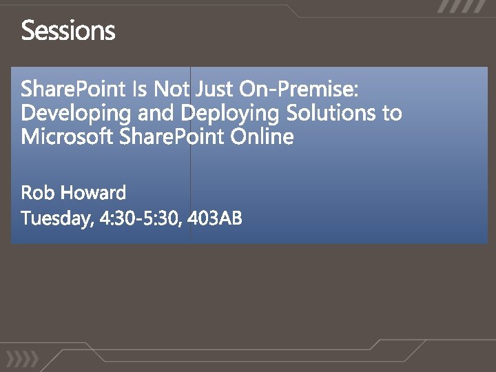 YOUR FEEDBACK IS IMPORTANT TO US! Please fill out session evaluation forms online at Microsoft. PDC. com