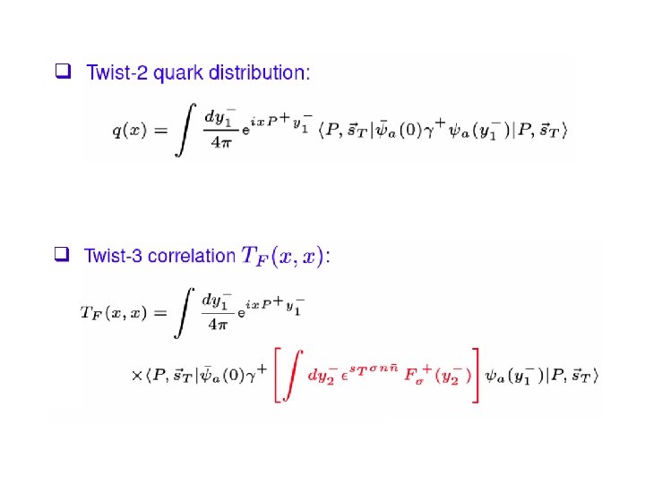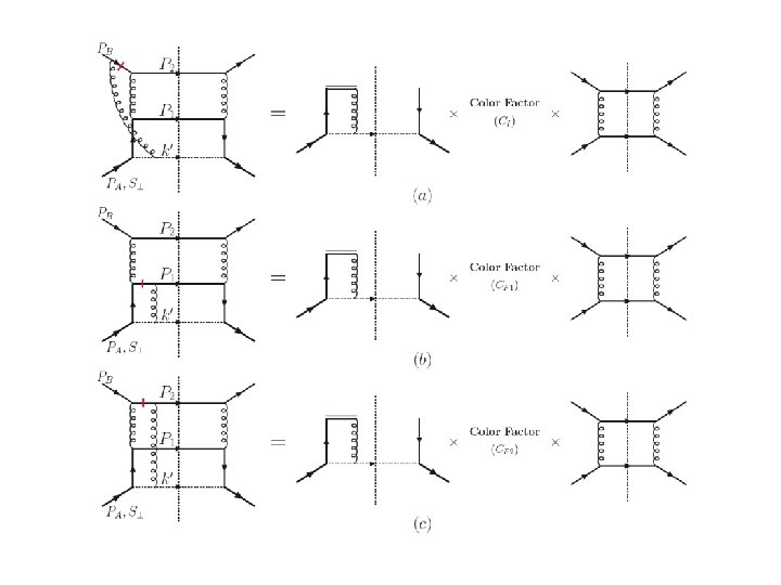 • ingredients: Collinear factorization. x 1 x 2 -x 1 x 2 quark-gluon correlation function TF(x 1, x 2) provides helicity flip unpol. pdf Phase from imaginary part of propagator ~ i (x 1 -x 2) (soft-gluon-pole contributions)