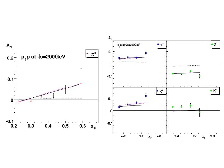 Ansatz: usual pdf Fit to E 704, STAR, BRAHMS for RHIC, use data with p. T>1 Ge. V § for E 704, choose p. T=1. 2 Ge. V allow normalization of theory to float (~0. 5)