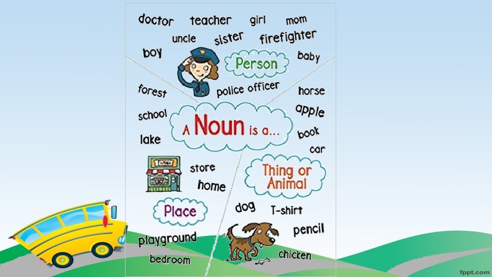 Nouns Ending with y If the noun ends with a vowel and y, add –s If the noun ends with a consonant and y, change the y to i and add –es Let’s Practice: 1. Puppy 2. Sky 3. Turkey 4. Bunny 5. Holiday 6. Donkey 7. Boy 8. Lady 9. Berry 10. way 1. Puppies 2. Skies 3. Turkeys 4. Bunnies 5. Holidays 6. Donkeys 7. Boys 8. Ladies 9. Berries 10. ways