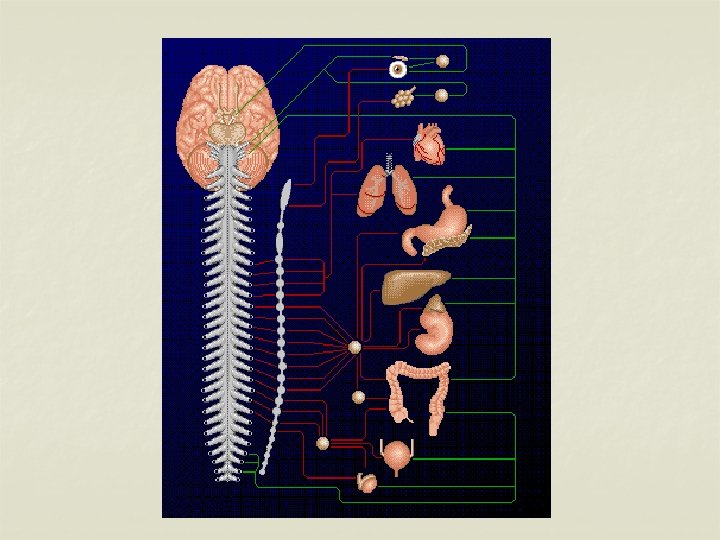 Omurilik Soğanı : n n n Beyinle omurilik arasında sinirsel bilgi iletimini, Kalp, akciğer, bağırsak, mide, damar… gibi iç organların istemsiz çalışmasını, Çiğneme, yutma, nefes alma, aksırma… olaylarını kontrol eder.