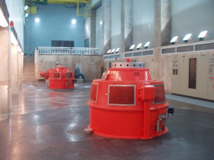 vrtnja magneta rotora generatora višefazni napon u namotima statora generatora višefazni napon na namote statora motora okretno magnetno polje jednake izvedbe statora brzina vrtnje mag. polja motora = brzini vrtnje magneta generatora jednake izvedbe statora i rotora jednake brzine vrtnje rotora generatora i motora trurbogeneratori - 2 (4) pola (mali promjer - horizontalni rotori) hidrogeneratori 24 i više polova (promjer 10 i više metara - vertikalni rotori)