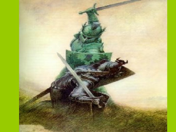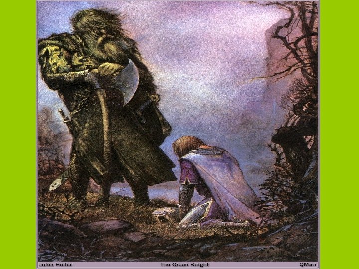 The Pentangle • The pentangle symbolizes the virtues to which Gawain aspires: – to be faultless in his five senses; – never to fail in his five fingers; to be faithful to the five wounds that Christ received on the cross; – to be strengthened by the five joys that the Virgin Mary had in Jesus (the Annunciation, Nativity, Resurrection, Ascension, and Assumption) – to possess brotherly love, courtesy, piety, and chastity.
