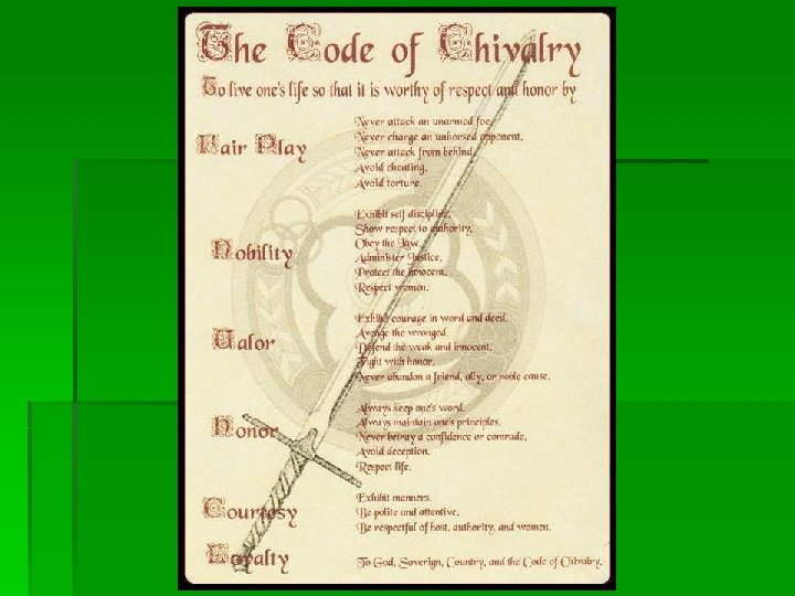 Main Characters… § Sir Gawain: § Arthur’s nephew and one of the most loyal, brave knights § Follows the chivalrous code (humility, piety, integrity, loyalty, honesty) § Courtly lover § One flaw: loves his life so much that he will lie to protect it (obviously breaking the code)