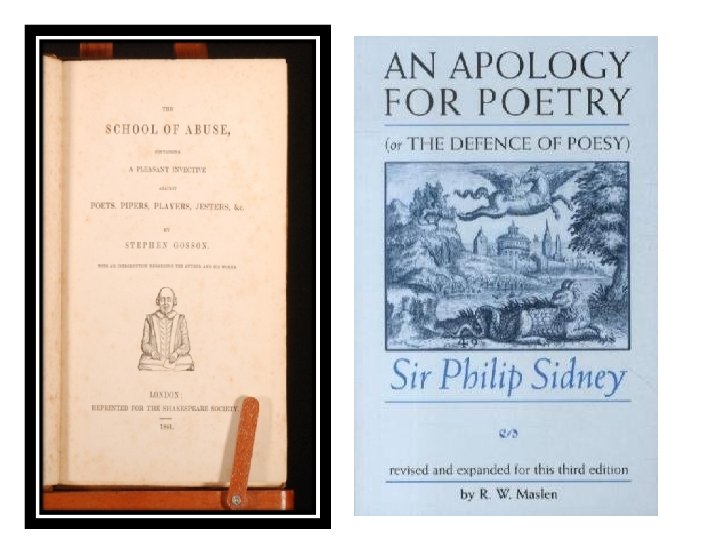 The school of abuse : Stephan Gosson has some charges on poetry: • • Poetry is useless and a waste of time Poetry is the mother of lies Poetry is a nurse of abuse There was a tradition that PLATO had banished poets from “the Republic”