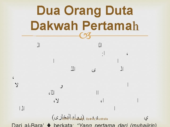 Bai’at Aqabah I dan Duta Dakwah Pertama Dua Belas Orang Yatsrib Bai’at Pertama Isi Bai’at Aqabah I Duta Dakwah Pertama Islamnya Usaid bin Hudhair Hikmah dan Pelajaran IQRO Foundation, Sydney, Australia