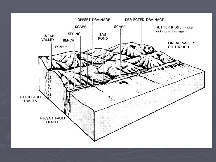 Definición de falla capaz según la NRC de EEUU Se considera falla capaz si presenta al menos una de los siguientes características: ► Movimiento detectado en superficie en los últimos 35. 000 años o movimiento recurrente en los últimos 500. 000 años. ► Macrosismicidad instrumental de precisión que demuestre una relación directa con la falla. ► Una relación estructural con la falla capaz, definida según alguna de las dos anteriores características, tal que el movimiento en ella pueda ser inducido en la otra.