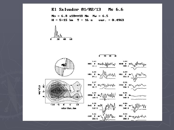 Magnitud de ondas Superficiales MS Para distancias grandes, el registro de un sismo esta dominado por las ondas superficiales. ► Gutenberg y Richter en 1936 desarrollaron una formula de magnitud basada en la amplitud de las ondas de Rayleigh con periodo de 20 s. ► MS= log. A +1. 66 log D +2. 0 ► ► donde A es el desplazamiento máximo en micrones D es la distancia epicentro-estación en grados. MS esta basada en desplazamiento máximo, no depende del instrumento. Se utiliza para sismos superficiales y distancias a partir de 1000 km.