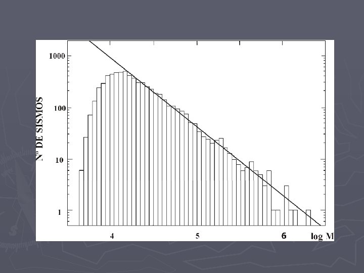 Distribución de sismos por tamaño ► Distribución Gutenberg-Richter siendo N el numero de sismos con magnitud M.