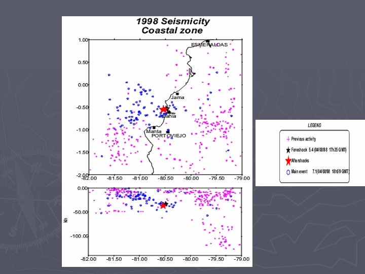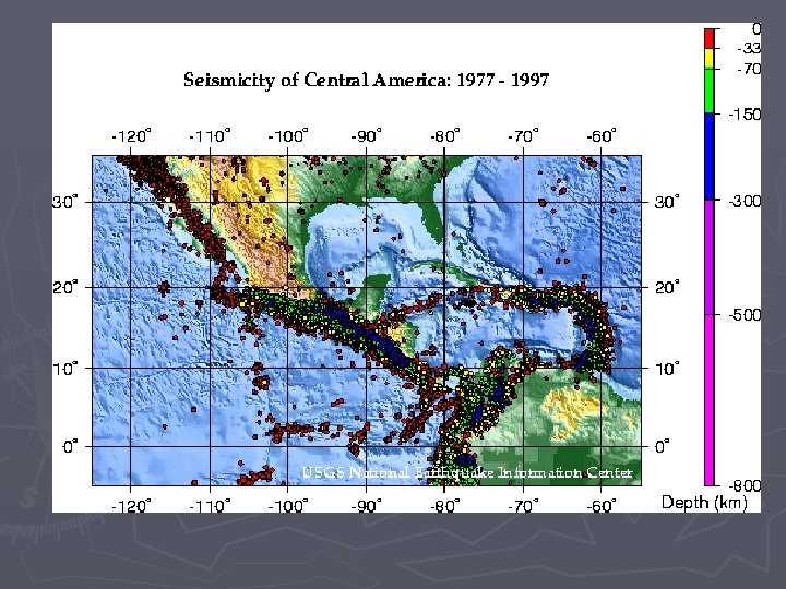 Distribución espacial de terremotos. Distribución de epicentros de una zona. -Diferenciación de periodos por su precisión. Históricos, intrumentales para distintos periodos de tiempo, etc. ► Distribución de hipocentros de una zona. -Diferenciación continua de profundidad en planos en los que se proyecta la sismicidad de un cierto volumen. -Distribución de epicentros correspondientes a intervalos amplios de profundidad. ►