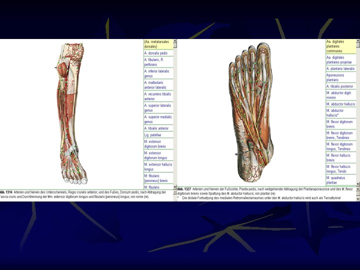 A. Iliaca externa & a. femoralis. n n A. iliaca externa ke tungkai atas a. femoralis dibelakang lig. inguinalis. A. femoralis ditungkai bwh bercabang a. tibialis ant. or & a. tibialis post. or A. tibialis ant. or ke punggung kaki a. dorsalis pedis A. tibialis post. or ketelapak kaki bercab. a. plantaris medialis & a. plantaris lateralis.