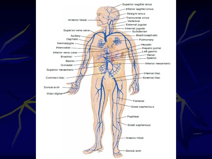 Susunan pembuluh balik Vv. superfisial. Vena superfisial Dileher n V. jugularis externa Lengan n V. cephalica n v, . basilica Tungkai n V. saphena magna digunakan tindakan venaseksi n V. saphena parva.