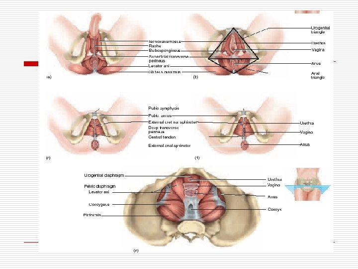 o DDG ANTERIOR (PUBIS), POSTERIOR (SACRUM & COCCYGIS), LATERAL (COXAE) & INFERIOR (DIAPHRAGMA PELVIS) o OTOT PELVIS o DDG PELVIS M. ILIACUS, PIRIFORMIS & OBTURATOR INTERNUS o DIAPHRAGMA PELVIS (M. LEVATOR ANI & COCCYGEUS) o DIAPHRAGMA PELVIS CANALIS & URETHRA PRIA & WANITA DI + VAGINA o M. LEVATOR ANI TBG : M. PUBOCOCCYGEUS & ILLIOCOCCYGEUS o FGS: PENYOKONG ORGAN PELVIS & SPHINCTER PADA VAGINA & RECTUM o PBLH DARAH CAB. A. ILIACA INTERNA & A. SACRALIS MEDIA PBLH BALIK MENGIKUTI ARTERI o PERSARAFAN N. PUDENDUS, PLEX. HYPOGASTRICUS & PLEXUS LUMBALIS o LEMAHNYA DIAFRAGMA MENONJOLNYA V. URINARIA PD DDG ANTERIOR VAGINA SISTOKEL
