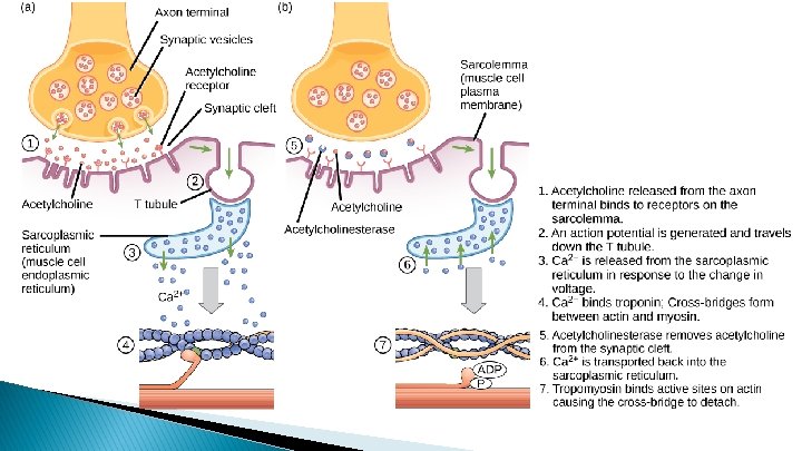Perubahan yang terjadi saat otot berkontraksi � Perubahan Bentuk, bentuk dan ukuran mengalami perubahan (otot tampak lebih gemuk dan pendek) � Perubahan Kimia, kandungan fosfat anorganik dan asam laktat bertambah, CO 2 dan air terbentuk, glikogen dan fosfat organik berkurang. � Perubahan Panas/thermis, panas yang dihasilkan akan bertambah melebihi panas istirahat, panasnya disebut initial heat