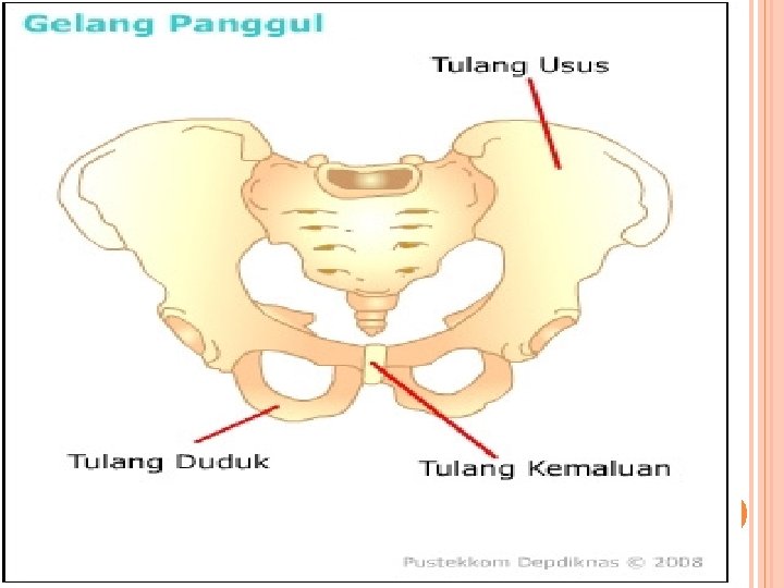 BENTUK-BENTUK TULANG 1. Tulang Pipa Bentuknya: pipa, memanjang dan tengahnya berlubang Contoh: tulang paha, betis 2. Tulang pipih Bentuk: pipih atau gepeng, contoh: tulang dada, tulang tengkorak Tulang pendek bentuk: ringan dan pendek, contoh: tulang pergelangan dan telapak tangan 4. Tulang tidak beraturan contoh: tulang pipi, tulang gelang panggul 3.