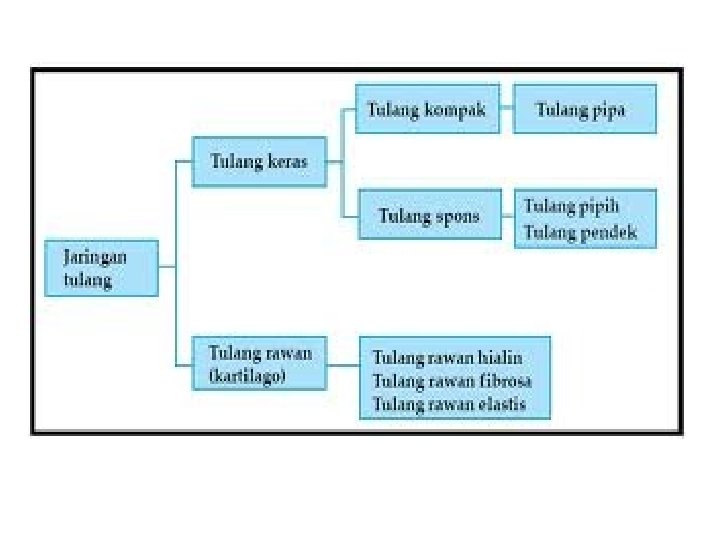 Tulang Pipa • Panjang bulat seperti pipa kedua ujung berbonggol • Bagian tengah ada sumsum kuning dan lemak • Tulang paha, lengan atas, kering, betis, hasta, pengumpil Tulang Pipih • Bentuknya pipih • Berisi sumsum merah • Pelindung organ vitasl • Tulang tengkorak, rusuk, dada, belikat Tulang Pendek • Pendek dan bulat • Berisi sumsum merah • Ruas tualng belakang, pergelangan tangan dan kaki.