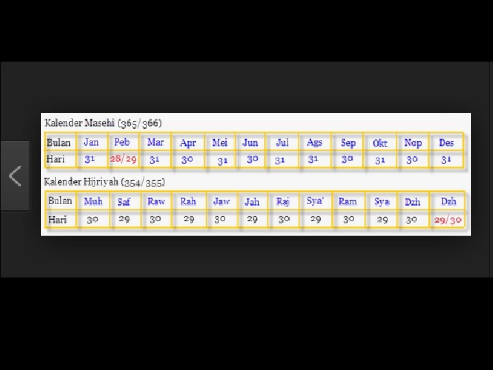 Sekilas sejarah kalender komariah Kalender komariah dihitung berdasarkan peredaran bulan mengelilingi bumi yaitu selama 29 hari 8 jam dan 43 menit. Perhitungan kalender komariah dimulai oleh khalifah Umar bin Khatab pada saat Nabi Muhammad melakukan hijrah. Dalam setahun dihitung 354 hari pada tahun biasa dan 355 pada tahun kabisat yang ada pada bulan Dzulhijah. Pertama kali dipublikasikan pada bulan Sya’ban 17 Hijriyah (Agustus 638 M) dimasa khalifah Umar bin Khaththab. Dg perhitungan yang dimulai dg hijrah Nabi ke Makkah (15 Juli 622 M )