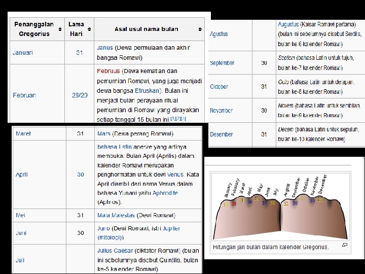 Sejarah Singkat Kalender Syamsyiah 1. Pertama sekali diperkenalkan diproklamirkan penggunaannya pada tahun berdirinya kerajaan ROMA tahun 753 SM, perhitungannya dibuat oleh NUMA POMPILUS. 2. Juni tahun 46 SM, dikoreksi oleh SOSIGENES. Dan dikenal dg kalender yulius 3. Januari tahun 350 M, dikoreksi dan menggunakan system penanggalan Yustinian 4. 15 Oktober 1582 menggunakan system Gregorian hingga sekarang CATATAN: DASAR PERHITUNGAN KE-EMPAT SISTEM TERSEBUT, SAMA-SAMA BERDASARKAN PEREDARAN MATAHARI ( SISTEM SYAMSIYAH). PERBEDAAN YANG MENDASAR dari ke-empat system tersebut adalah : 1. system NUMA POMPILUS : 1 tahun = 366 hari 2. system KALENDER YULIUS : 1 tahun = 365, 25 hari 3. system KALENDER YUSTINIAN : 1 tahun = 365, 25 hari 4. system KALENDER GREGORIAN : 1 tahun = 365, 2425 hari
