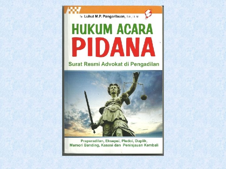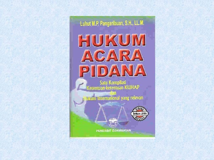 KONSEP DAN ASAS-ASAS • Crime-control model dan due process model • Inquisitorial dan Non-Adversary • Pemeriksaan pendahuluan (pra-ajudikasi): hasil “BAP” dan “SD”. BAP adalah bukti kesalahan. • Pemeriksaan Pengadilan: Judex factie dan Judex Jurist • Sepuluh asas KUHAP: equality before the law; legalitas dalam upaya paksa; presumption of innocence; remedy and rehabilitation, fair, impartial, impersonal and objective; legal assitance; presensi; terbuka; pengawasan pelaksanaan putusan