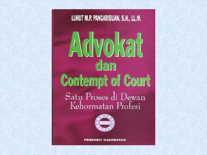 SISTEM PERADILAN PIDANA Oleh : Dr. Luhut M. P. Pangaribuan, S. H. , LL. M. Dosen Praktik Peradilan Pidana FHUI Ketua Dewan Kehormatan DPP-IKADIN, Anggota Dewan Kehormatan Pusat PERADI
