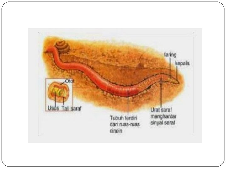 5. Cacing tanah Cacing bernapas melalui permukaan kulit karena tidak mempunyai alat pernapasan khusus. Cacing menyukai tempat yang lembab. Dengan cara demikian, kulit cacing terjaga kelembabapannya sehingga selalu basah dan berlendir. Kulit yang basah dan berlendir itu memudahkan penyerapan oksigen dari udara. Melalui pembuluh darah di permukaan kulitnya yang tipis, oksigen diikat oleh darah. Darah cacing mampu mengikat oksigen karena mengandung hemoglobin. Oksigen yang diikat oleh hemoglobin itu selanjutnya diedarkan ke seluruh tubuh. Zat sisa pembakaran yang berupa karbon dioksida dan uap air dikeluarkan dari tubuh juga melalui permukaan kulit.
