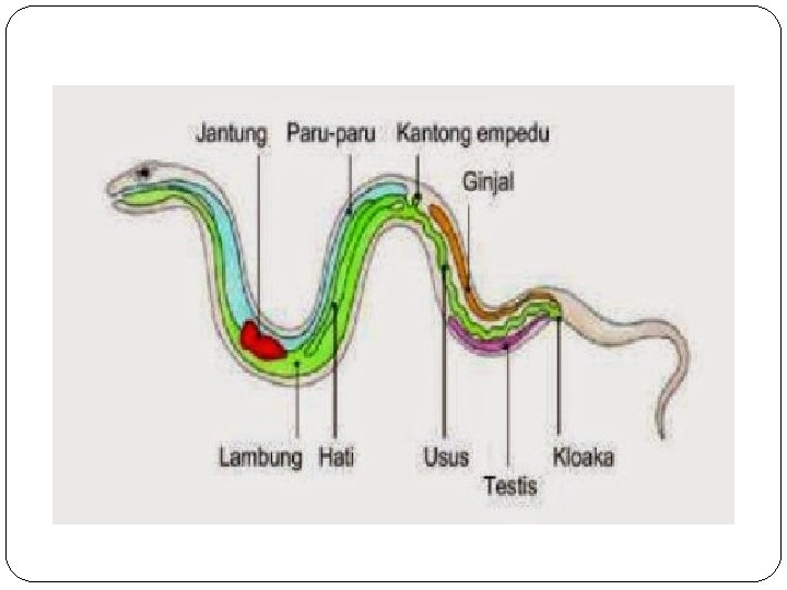7. Reptil bernapas dengan paru – paru. Udara masuk melalui hidung => batang tenggorokan => paru – paru. Dalam paru – paru, oksigen diserap, sedangkan karbon dioksida dikeluarkan. Contoh reptile adalah ular, kadal, buaya, cicak, dan biawak. Paru-paru reptilia berada dalam rongga dada dan dilindungi oleh tulang rusuk. Paru-paru reptilia lebih sederhana, hanya dengan beberapa lipatan dinding yang berfungsi memperbesar permukaanpertukaran gas. Pada reptilia pertukaran gas tidak efektif. Pada kadal, kura-kura, dan buaya, paru-paru lebih kompleks, dengan beberapa belahan-belahan yang membuat paru-parunya bertekstur seperti spon. Reptil yang sering berkubang di air misalnya buaya, lubang hidungnya dapat ditutup selama menyelam. Tujuannya agar air tidak