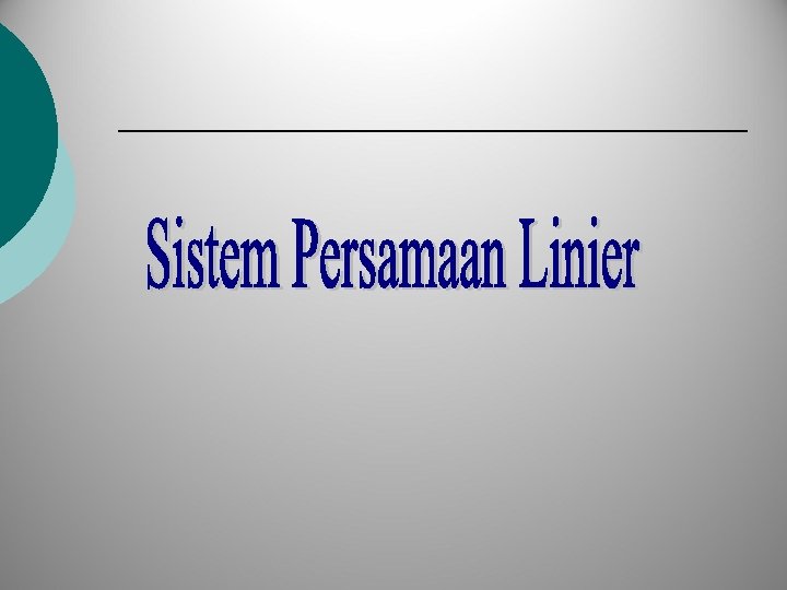Sistem Persamaan Linier Suatu sistem persamaan linier (atau himpunan persaman linier simultan) adalah satu set persamaan dari sejumlah unsur yang tak diketahui. Bentuk umum Sistem ini mengandung m persamaan dengan n unsur yang tak diketahui yaitu x 1 …. xn. Bilangan a 11 …. . amn disebut koefisien dari sistem itu, yang biasanya merupakan bilangan-bilangan yang diketahui. Bilangan-bilangan b 1 …. bm juga merupakan bilangan-bilangan yang diketahui, bisa bernilai tidak nol maupun bernilai nol Jika seluruh b bernilai nol maka sistem persamaan tersebut disebut sistem persamaan homogen