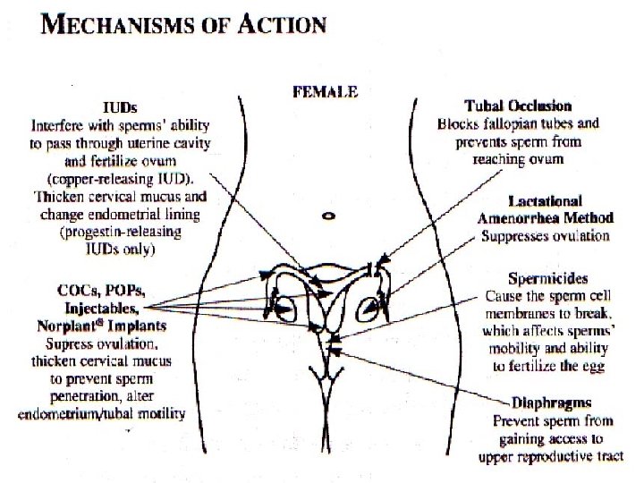 PRINSIP K. B. / Kontrasepsi Mencegah bertemunya sperma dan ovum o Sederhana : n pantang berkala n coitus interruptus o Mekanik : n kondom ( laki 2 dan wanita ) o Kimiawi : n foam , jelly , tissue o Hormonal : n pil KB , suntik , susuk o AKDR : n Cu. T 380 A , Nova T , Lippes Loop. Multiload. n Hormonal o Operatif : n Vasektomi n Tubektomi