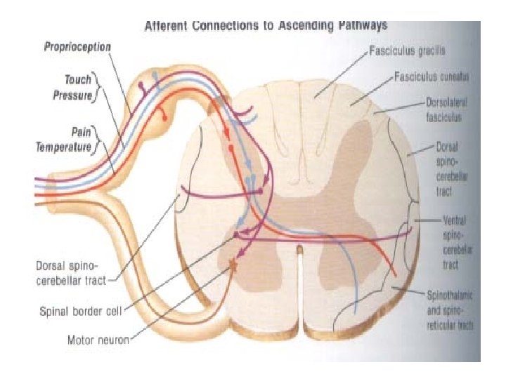 B. BELAHAN LATERAL - cabang perifer reseptor - cabang sentral: substantia gelatinosa Rolandi berjalan kontralateral tract. spinothalamicus lateralis - pars descendens dari cabang sentralis ini tidak lebih dari 1 segmen, shg dianggap tidak bercabang