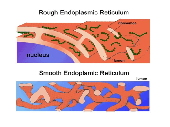Retikulum Endoplasma (RE) n Semua sel eukariota mengandung RE. n Lima puluh persen selaput di dalam sel adalah RE n Selaput RE merupakan lembaran yg terlipat- lipat mengelilingi lumen RE. n Selaput RE bersifat dinamis, sehinga tidak mudah dikenali.