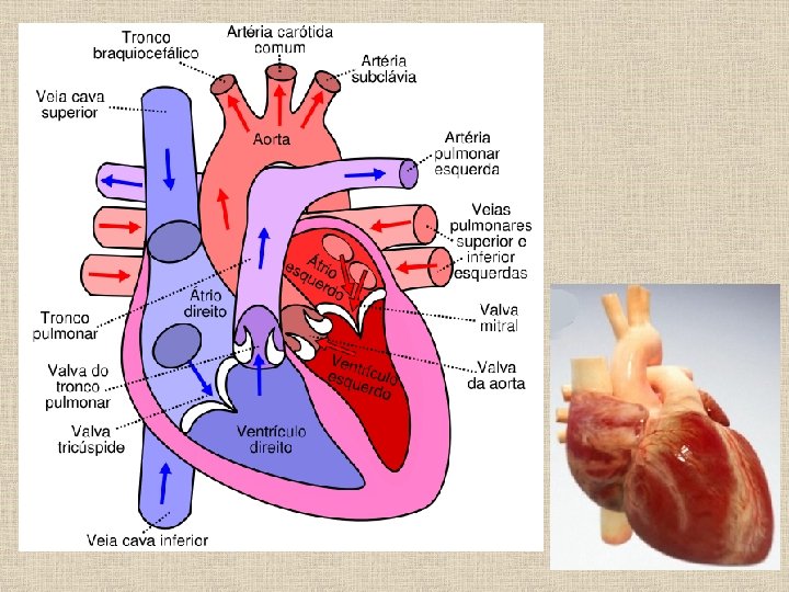 A coloração azulada simboliza o sangue rico em gás carbônico e pobre em gás oxigênio. A coloração avermelhada simboliza o sangue rico em gás oxigênio e pobre em gás carbônico.