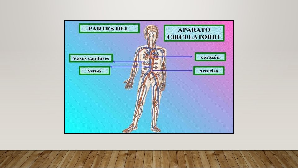 SANGRE Liquido compuesto por glóbulos rojos, plaquetas y plasma CORAZON Músculo que tiene como función bombear la sangre por todo el cuerpo. APARATO CIRCULATORIO CAPILARES Vasos microscópicos que unen las terminaciones de las arterias y el comienzo de las venas. VASOS SANGUINEOS ARTERIAS La sangre desde el corazón a los órganos VENAS La sangre desde los órganos al corazón.
