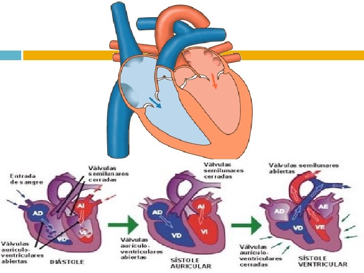 Ciclo cardíaco Se denomina sístole a la contracción del corazón (ya sea de una aurícula o de un ventrículo) para expulsar la sangre hacia los tejidos. Se denomina diástole a la relajación del corazón para recibir la sangre procedente de los tejidos.