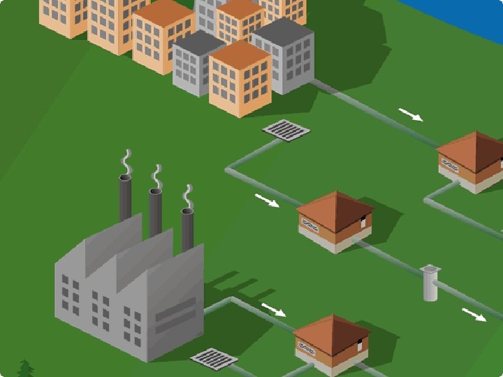 Otras estructuras más importantes: v Estaciones de bombeo: como la red de alcantarillado trabaja por gravedad, para funcionar correctamente las tuberías deben tener una cierta pendiente. En ciudades con topografía plana, es conveniente intercalar en la red estaciones de bombeo. v es. wikipedia. org/wiki/Estaci%C 3%B 3 n_de_bombeo Tubería en presión que se inicia en una estación de bombeo y se concluye en otro colector o en la estación de tratamiento. v. Depósitos de retención o también pozos o tanques, donde es necesario retener un cierto volumen inicial de las lluvias para reducir la contaminación del medio receptor (depósitos, tanques o pozos de tormentas).