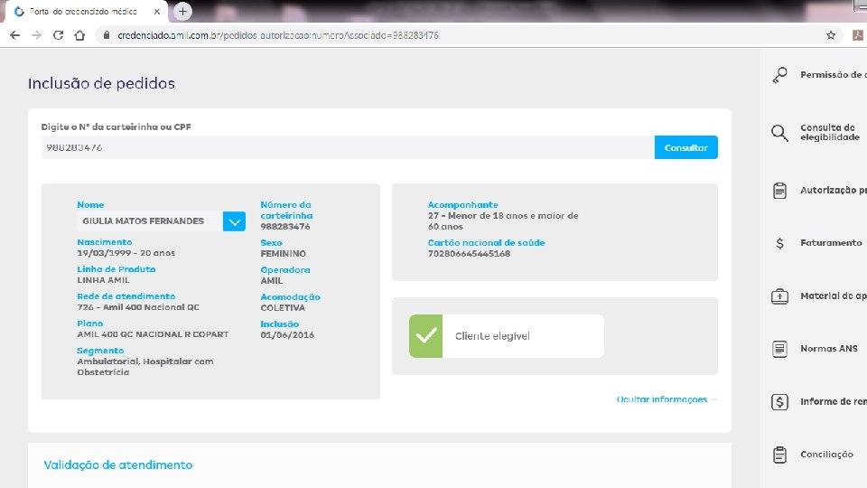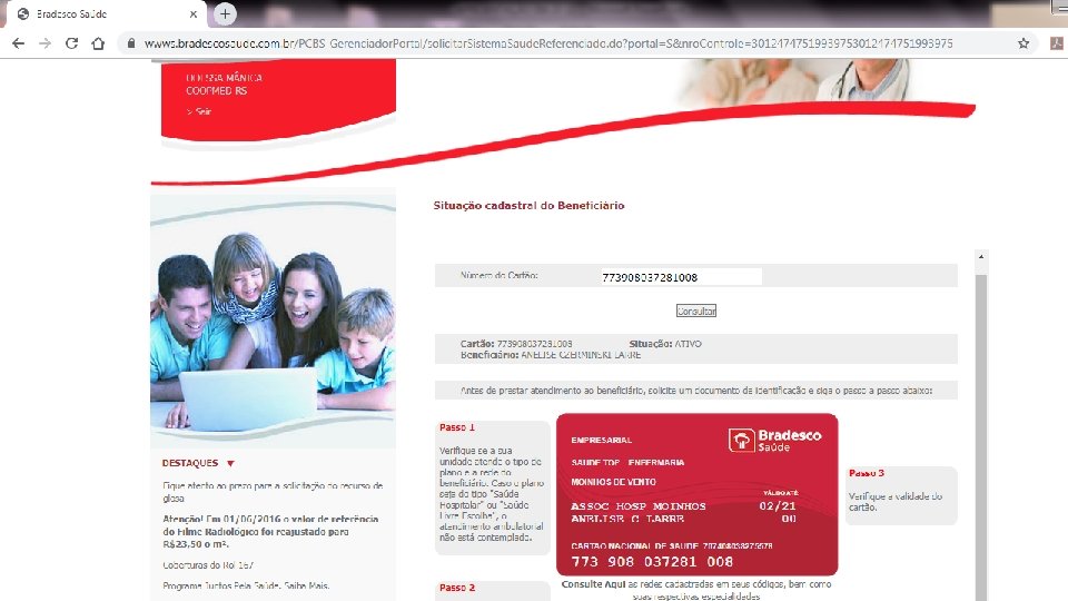 IMPORTANTE SAÚDE BRADESCO - ELEGIBILIDADE OBS. : Com a elegibilidade é possível identificar o tipo de plano e se o mesmo está ativo para atendimento.