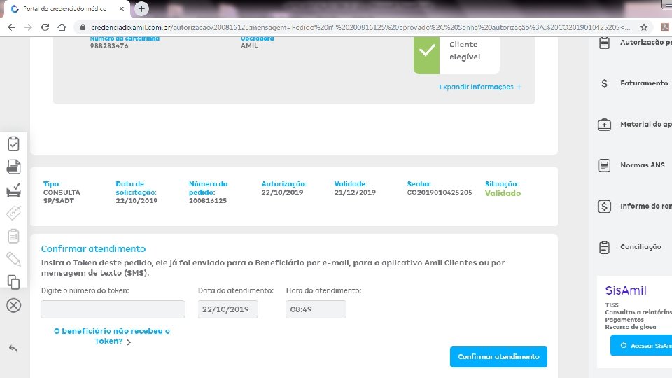 CONVÊNIOS QUE EXIGEM SENHA: CONSULTA ELETIVA: AMIL OBS. : O número de autorização gerado no site dever ser colocado no seguinte campo. A SENHA SE INICIA POR: CO 2019