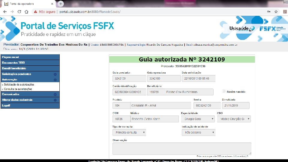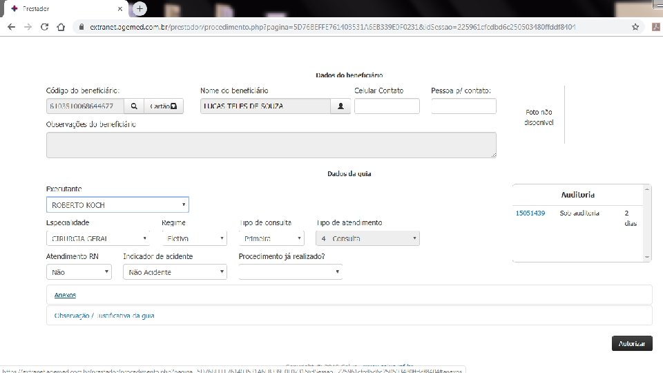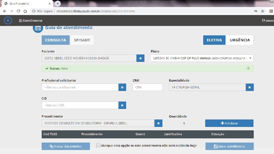 CONVÊNIOS QUE EXIGEM SENHA: CONSULTA ELETIVA: SAÚDE PAS OBS. : O número do Código autorizador gerado no site dever ser colocado no seguinte campo.