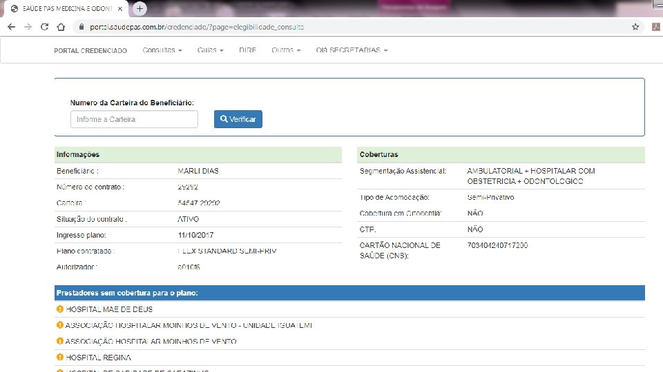 CONVÊNIO SULAMÉRICA Os 3 primeiros dígitos da carteirinha, que se referem ao produto do plano do beneficiário, não DEVEM ser inseridos no sistema de consultas. Digitar os 17 números após o produto. Ex: 582 00530 0000 0832 0010 Os três primeiros dígitos 582 são referentes aos produto do plano do beneficiário e NÃO DEVEM SER DIGITADOS.