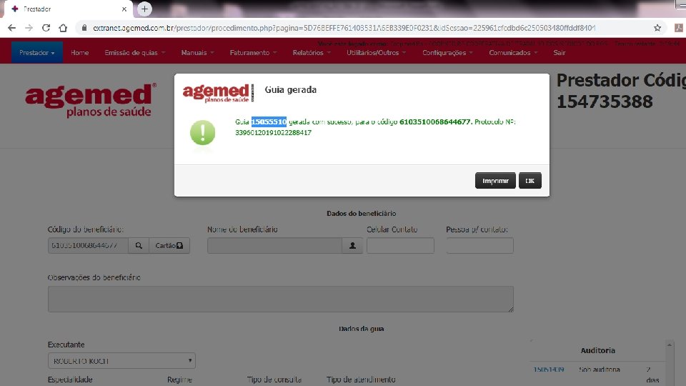 CONVÊNIOS QUE EXIGEM SENHA: CONSULTA ELETIVA: AGEMED OBS. : O número de autorização gerado no site dever ser colocado no Nº guia operadora.