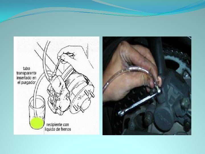 Purgado de frenos El purgado del sistema de frenos es una de las operaciones de mantenimiento más importantes que podemos realizar sobre este sistema, debiendo ser purgado en el siguiente orden: Comenzar la operación de purgado con la rueda de mas lejos a la bomba de frenos. Purgar rueda compañera a la recién purgada. Purgar rueda más lejana a la bomba. Purgar rueda compañera de la recién purgada.
