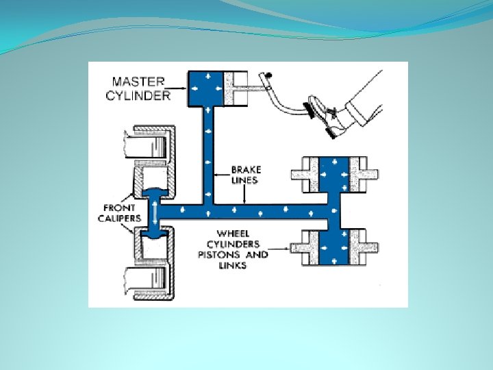 DISTRIBUCION II UN CIRCUITO DE FRENO ACTUA SOBRE EL EJE TRASERO Y OTRO CIRCUITO ACTUA SOBRE EL EJE DELANTERO.