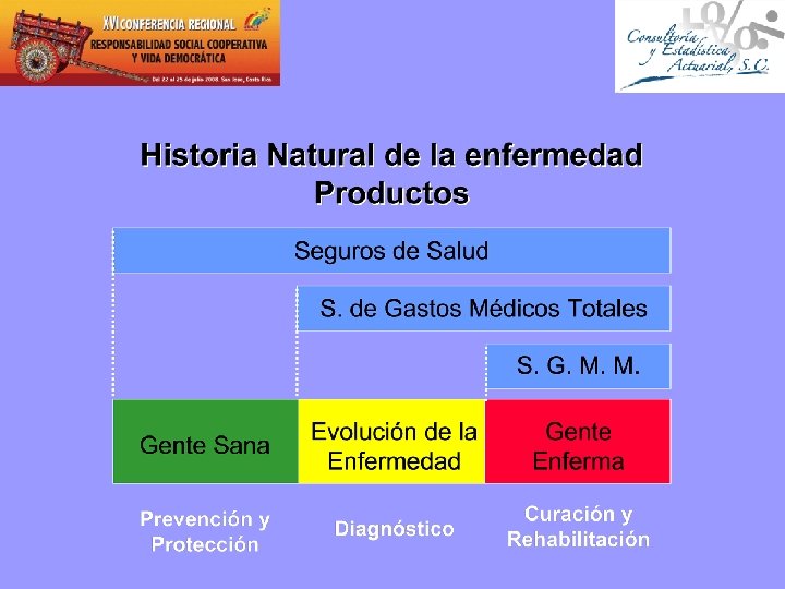 Evolución del Seguro Médico Asegurabilidad / Infraestructura Estatus integrado, ofertas independientes Hospital cash Mercados más maduros, compradores sofisticados Enferm. Criticas Cargas legales y regulatorias, pocos incentivos Riesgo no asegurable – Sin oportunidad Reembol s Total Gestión de Siniestro s Solo Vida Quedar Fuera Administración Suscripción, Desarrollo Productos Gestión Activa de Siniestros Actitud de Seguro Source: Swiss Re Economic Research & Consulting; Swiss Re L&H
