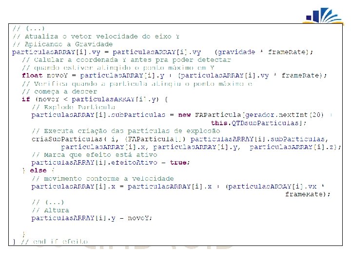 • Implementação – Classe FAMotor. Particulas pacote br. furb. sp. motor. fogosartificio • Método update()