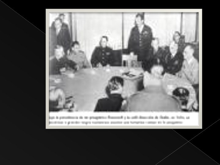 8 PRINCIPIOS DE LA CARTA DEL ATLÁNTICO Renuncia a expansión territorial 2. Prohibidos cambios territoriales contra la voluntad del pueblo respectivo 3. Respeto al derecho de cada pueblo para elegir su forma de gobierno 4. Igualdad de acceso al comercio de materias primas 1. 5. Colaboración en materia económica 6. Establecer paz entre todas las naciones 7. Libertad de los mares 8. Renuncia al uso de la fuerza y desarme de los vencidos como primer paso para un sistema de seguridad general permanente