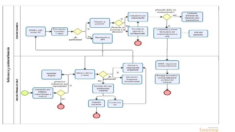 Derivaciones del nivel secundario a especialidades odontológicas: • Las derivaciones deben cumplir con el mismo protocolo establecido en cuanto a completitud de datos, pertinencia clínica y administrativa. Posteriormente el contralor de la especialidad deberá revisar la pertinencia de éstas y aceptarlas o rechazarlas según corresponda. En caso de que la interconsulta, no cumpla con protocolo mínimo, tales como: presencia de lesiones de caries no tratadas, enfermedad periodontal no controlada u otras situaciones clínicas que requieren manejo previo, la interconsulta deberá ser enviada a APS para su resolución y posterior derivación desde este nivel a la atención secundaria.
