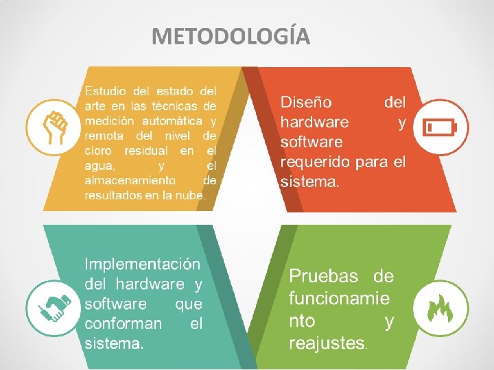 OBJETIVO GENERAL: Desarrollar un sistema de monitoreo automático que permita conocer de forma remota el nivel de cloro libre residual presente en el agua para consumo humano. OBJETIVOS ESPECÍFICOS: Desarrollar un sistema embebido capaz de medir el nivel de cloro en el agua y llevar esta información a la nube. Desarrollar una aplicación en la web que permita que recopilar y tabular la información proporcionada por varios sistemas embebidos instalados en las juntas de agua. Simular su implementación en toda la provincia del Azuay y a nivel país para determinar posibles fallos y mejoras previas a una posible implementación real.