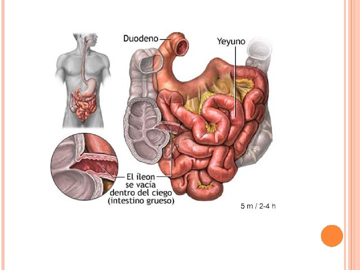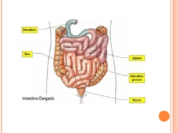 INTESTINO DELGADO Tubo muscular de parede delgada com cerca de 2, 5 cm de diâmetro e de 5 a 8 metros de comprimento. Inicia-se no piloro, constrição musculosa que separa o estômago do intestino delgado, e segue até a válvula ileocecal, que separa os dois intestinos. O duodeno é a primeira parte do intestino delgado, já o jejuno e o íleo não são fáceis de diferenciar.