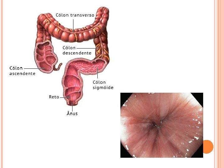 INTESTINO GROSSO Cólon É a maior parte do intestino grosso. Se subdivide em 4 partes: o cólon ascendente, o cólon transverso o cólon a curva sigmoide. descendente e